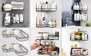 Our corner shower shelf caddy organizer comes with shelves, making it perfect for both bathroom and kitchen use. It can store soap, shampoo, facial cleanser, lotion, brushes, and more. It's also great for storing spice jars, cans, bottles, and more, saving a lot of space.