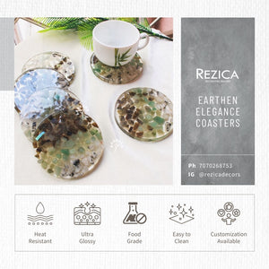 Introducing Rezica's Earthen Elegance Premium Stone Resin Coaster Set—an exquisite blend of artistry and functionality. Crafted from premium resin, these coasters showcase captivating designs suitable for any decor style.