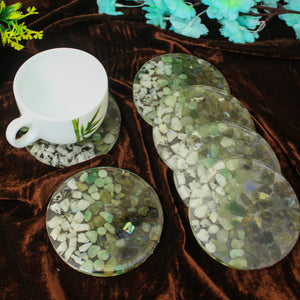 Specifications Color- Real Natural Stone This Coaster is Made with Real White Agate Stone, Green Aventure Stone, Lebronite Agate Stones Finish- Glossy Shape- Round Made with- Epoxy Resin How to Clean- Just Wipe...