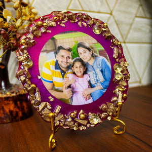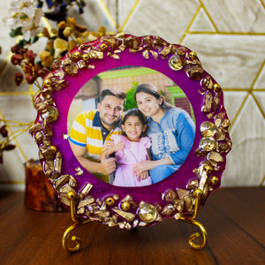 Lavish Purple Majesty Customized Photo Frame 5 Inches with Golden Stand