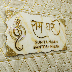 Majestic Gold Pearl Crest Insignia Name Plate for Home Entrance (Customizable)
