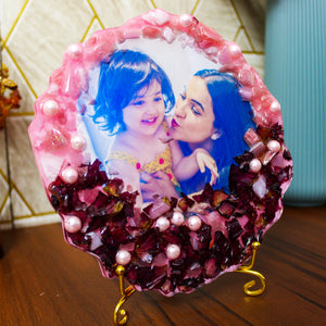Petal Pink Perfection Rose Preserved Photo Frame 6 Inches with Golden Stand
