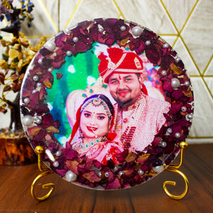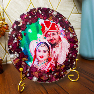 Preserved Rose Customized Photo Frame 6 Inches with Golden Stand