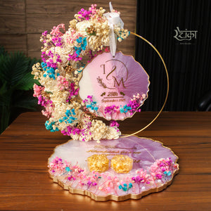Rezica™ Royal Resin (Floral Symphony) Engagement Ring Platter with 2 Premium Ring Boxes and Heavy Flower Hoop