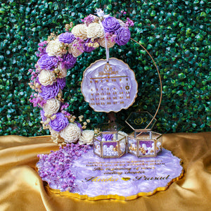 Rezica™ Royal Resin (Lavender Floral) Engagement Ring Platter with 2 Premium Ring Boxes and Heavy Flower Hoop (10 Inch Base)