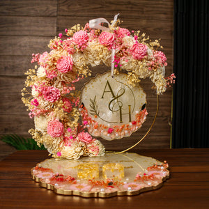 Rezica™ Royal Resin (Pink Cashmere Sand) Engagement Ring Platter with 2 Premium Ring Boxes and Heavy Flower Hoop