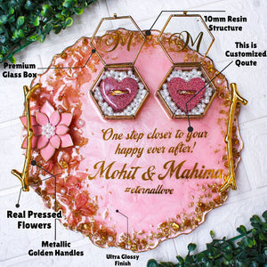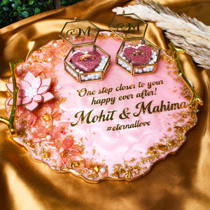 Crafted with real dried flowers, this 10-inch resin platter is a perfect blend of elegance and functionality. It comes with two premium ring boxes, making it a stunning addition to your engagement or wedding ceremony.