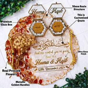 Crafted with real dried flowers, this 10-inch resin platter is a perfect blend of elegance and functionality. It comes with two premium ring boxes, making it a stunning addition to your engagement or wedding ceremony.
