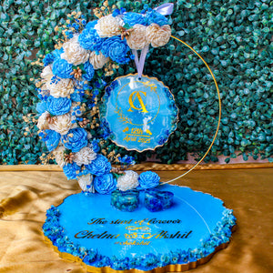 Rezica™ Royal Resin (White n Blue Royal) Engagement Ring Platter with 2 Premium Ring Boxes and Heavy Flower Hoop (10 Inch Base)