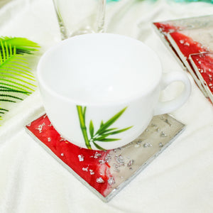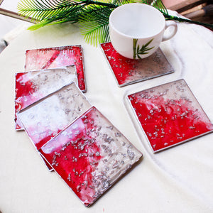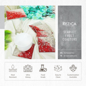 Introducing the Scarlett Frost Premium Resin Coasters Set by Rezica decors, blending the vibrancy of red and the serenity of white in a stunning mix. Crafted from premium resin, these coasters redefine home decor essentials. Their exquisite design makes them ideal for both dining tables and tea settings, adding an artistic touch to your home.