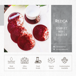 Introducing the Scarlett Wave Premium Resin Coaster Set by Rezica Decors, an exquisite fusion of functionality and artistry. Crafted with premium resin, each coaster in this set showcases captivating scarlet waves, adding a touch of sophistication to your table decor.