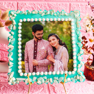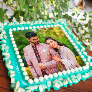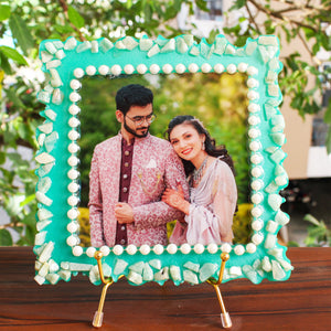 Teal Treasure Natural Stone Photo Frame (8 Inches Square) with Golden Metal Stand