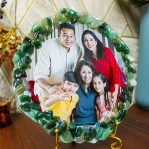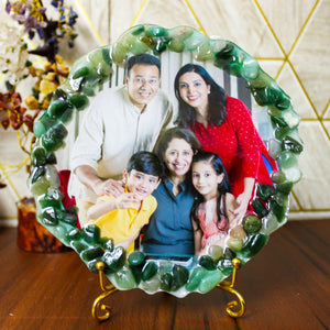 Verdant Aventurine Natural Stone Customized Photo Frame 6 Inches with Golden Metal Stand